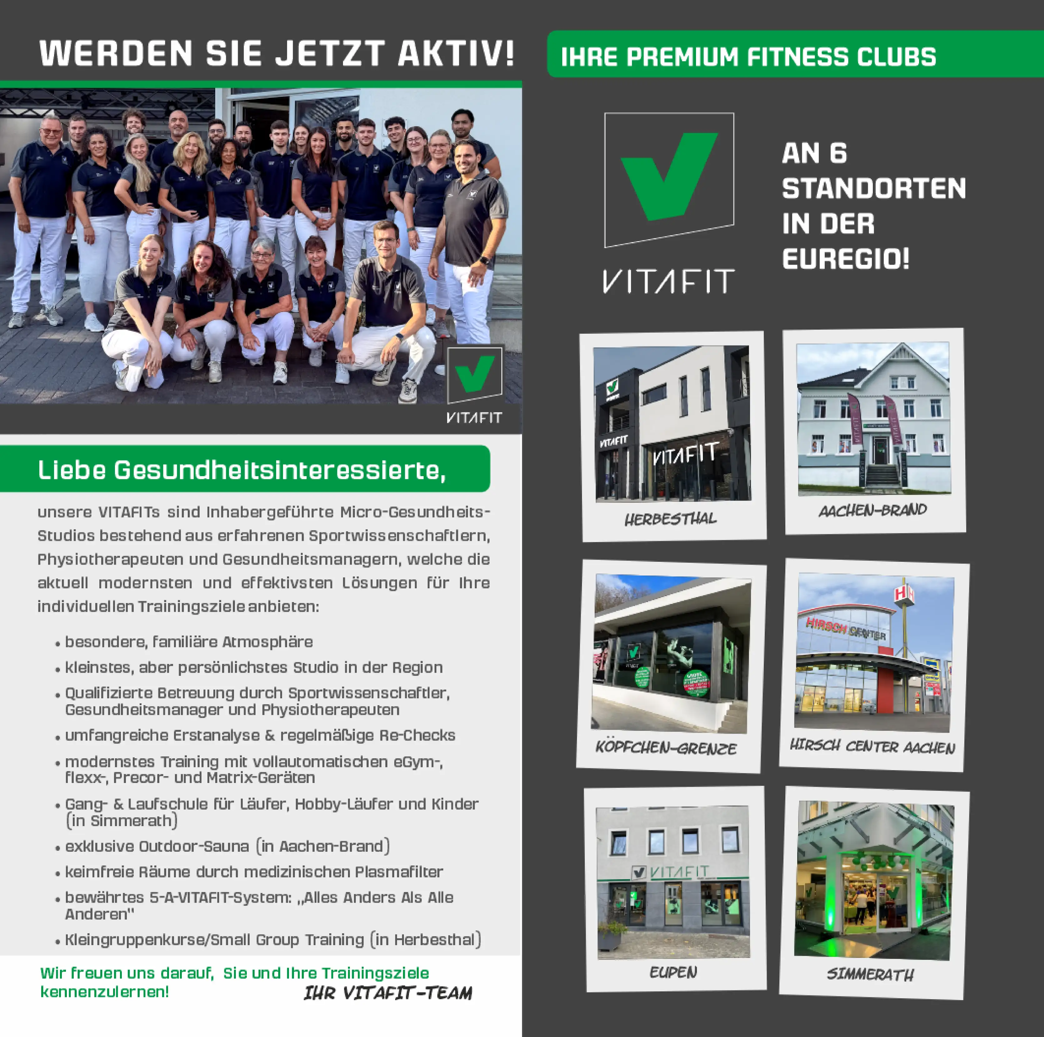 Willkommen bei Vitafit!Ihr Gesundheitstraining in Eupen und insgesamt 6x in der Euregio!