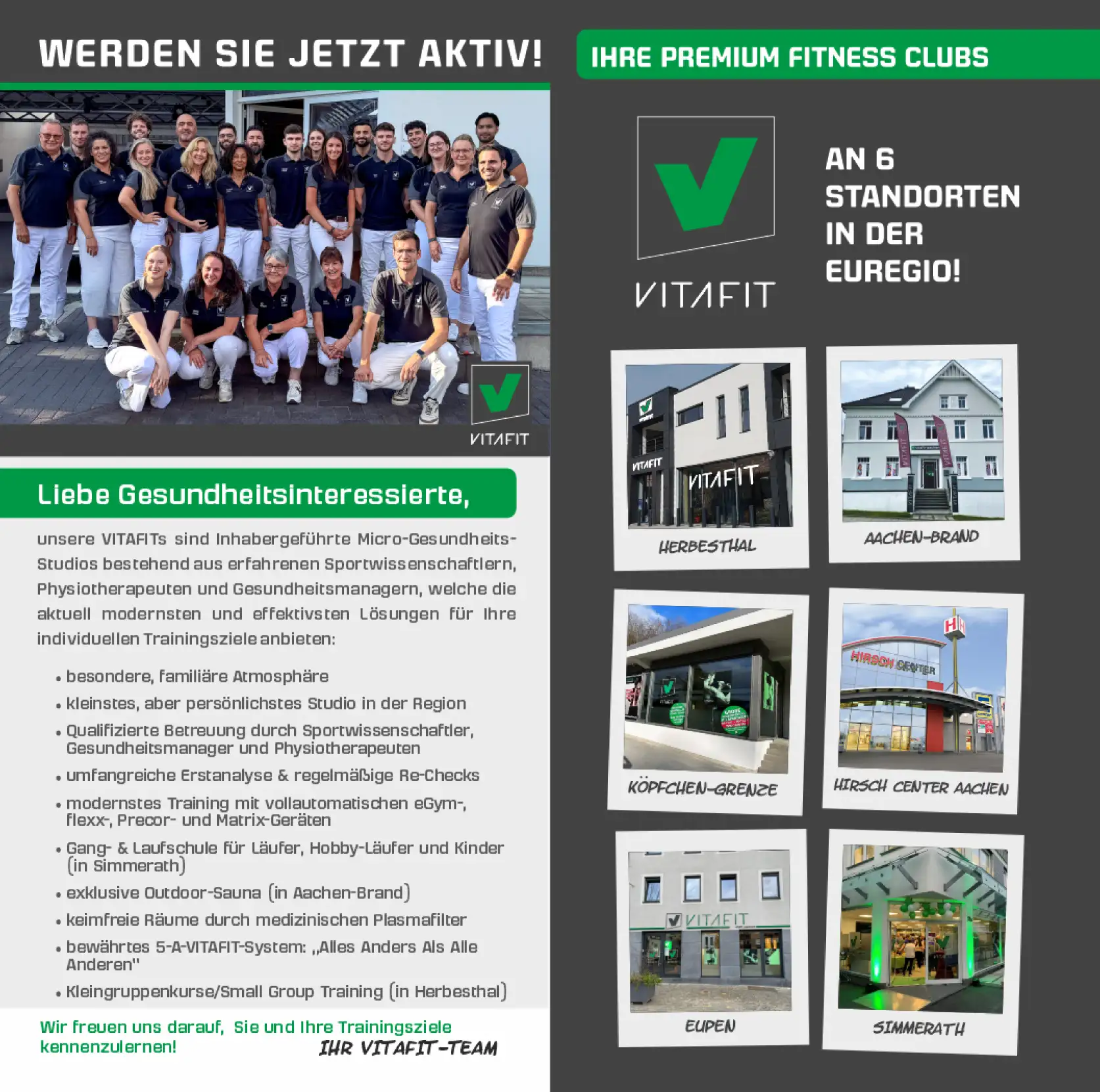 Aktiv werden, um fit und gesund jeden Tag zu genießen. Macht maximal Spaß bei Vitafit Eupen.